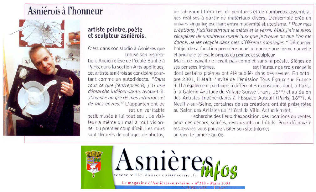 Parution d’un article de presse dans l’hebdomadaire « Asnières Info ».